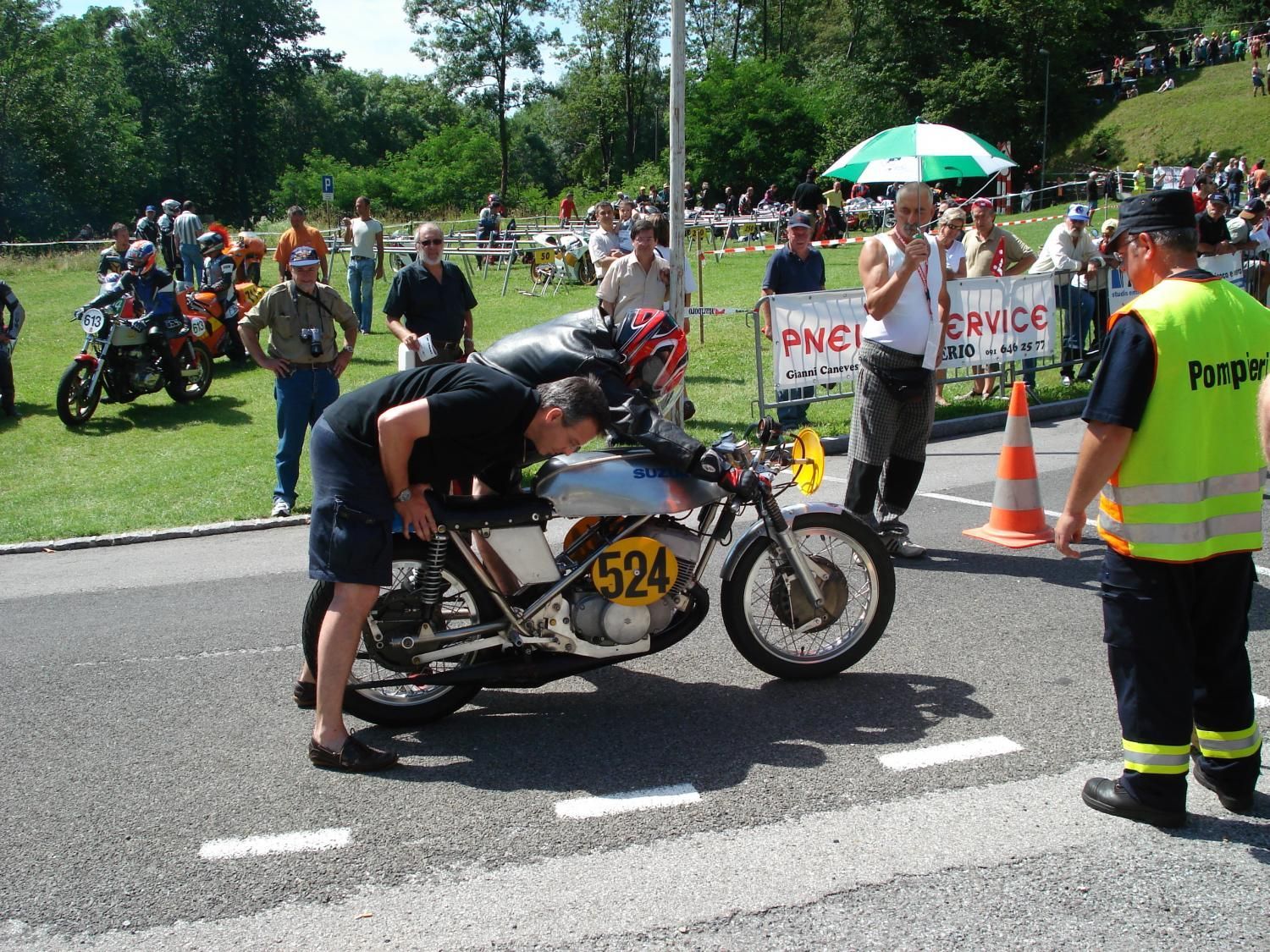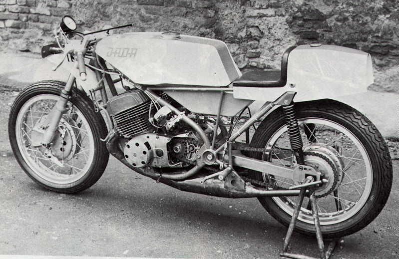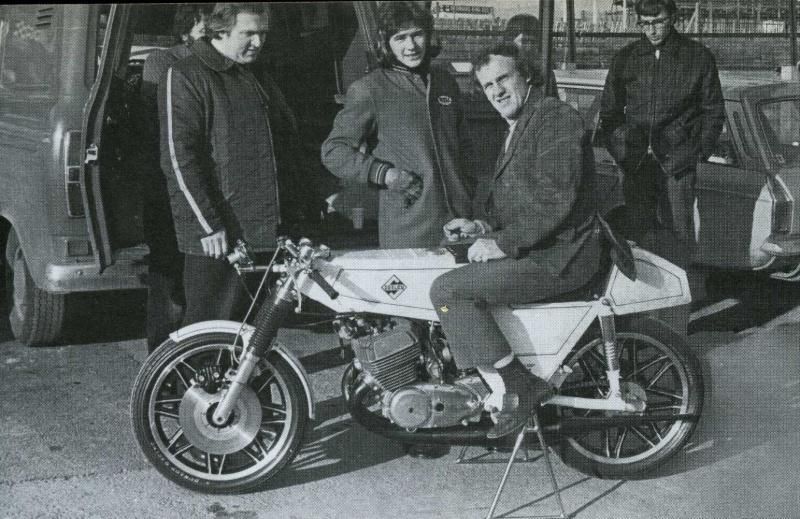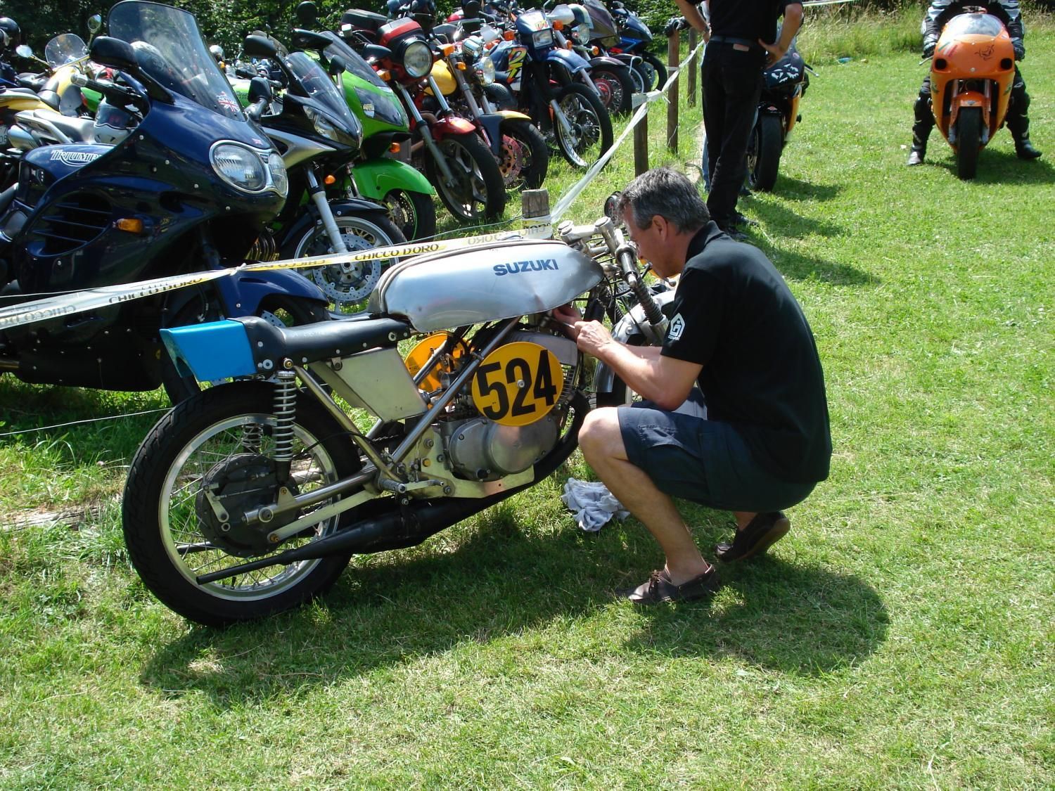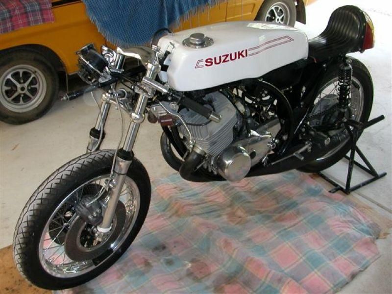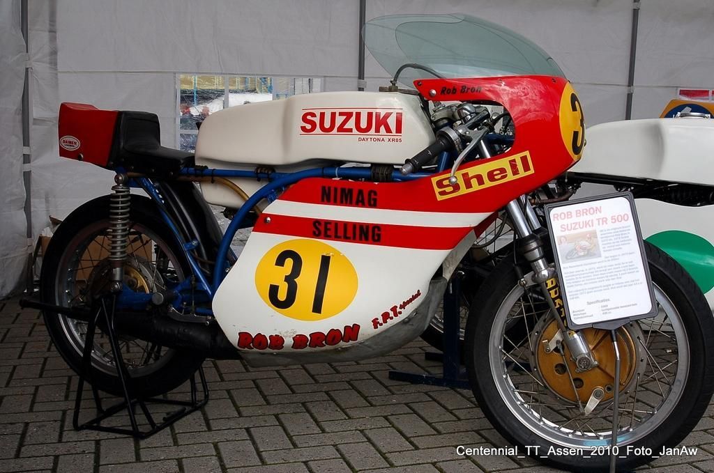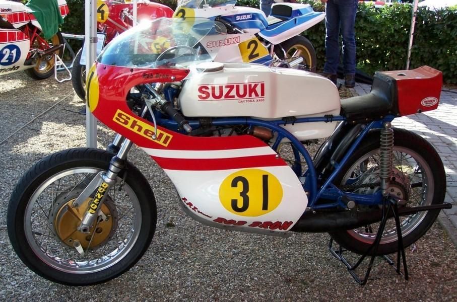 Suzuki TR500 replica. (non in vendita / not for sale) Cilindri lavorati con pacco lamellare + teste Daytona con candela centrale / Albero motore alleggerito / Ingranaggio primaria a denti diritti / Frizione racing / 2 carburatori Mikuni VM36 / Telaio rinforzato / Forcellone posteriore in tubi acciaio ovali / Freno posteriore originale Menani / Freno anteriore 4 ganasce Robinson / Forcella 35mm originale Ceriani. Potenza CV ca. 75 a 9000 giri.
